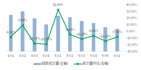6月第一周,大连二手房成交量环比下降7.98%。近10周数据来看,甘井子区市场成交占比有下降明显,开发区市场热度仍高。开发区和金州成交占比已高达32.95%。