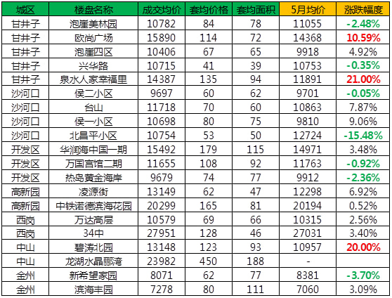 成交价涨跌幅度 = (本月成交均价-上月成交均价)/上月成交均价*100%