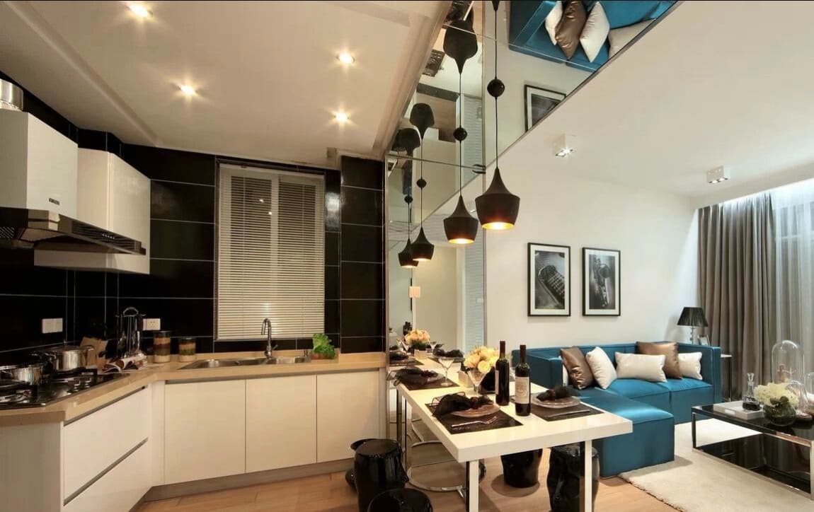 小户型居室由于面积较小,特别是厨房,一般只有7m2以下,因此为了让厨房拥有更大的视觉和收纳空间。