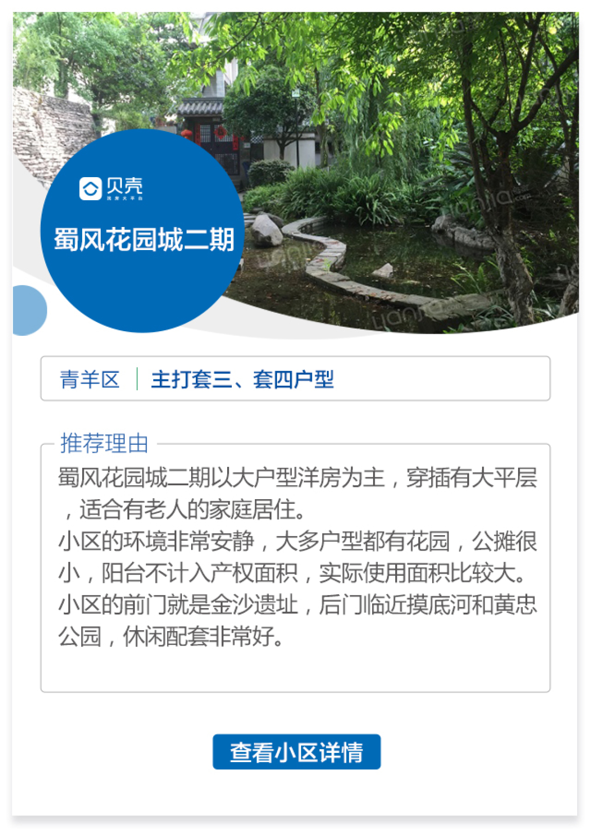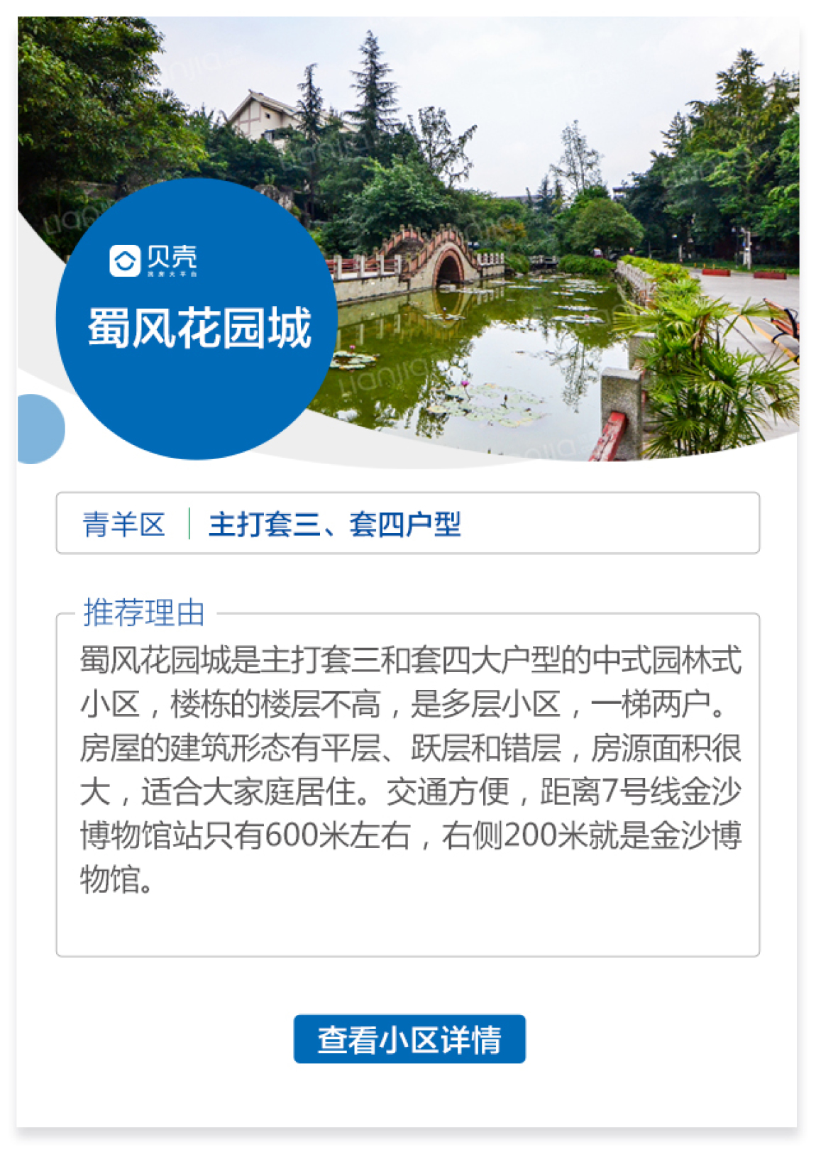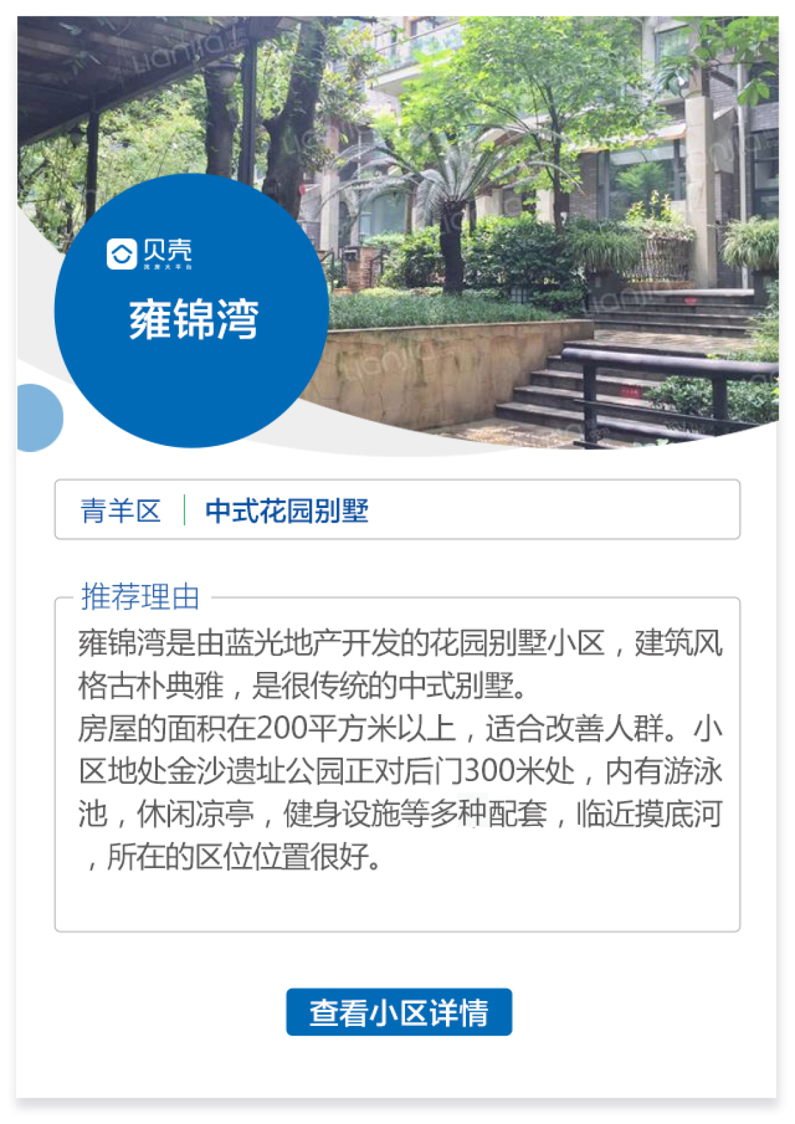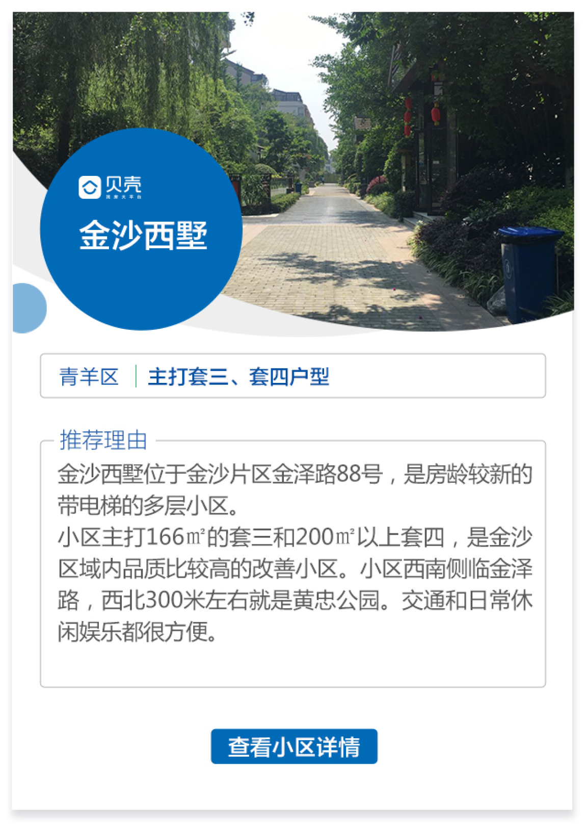 注:根据2018年8月27日成都贝壳官网上的房源展示页面,目前金沙西墅小区暂无在售房源,对小区感兴趣的购房者可点击关注小区,有新上房源会及时提醒。