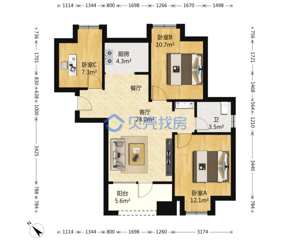 特点:南北通透三房,主卧朝南,明厨明卫。
