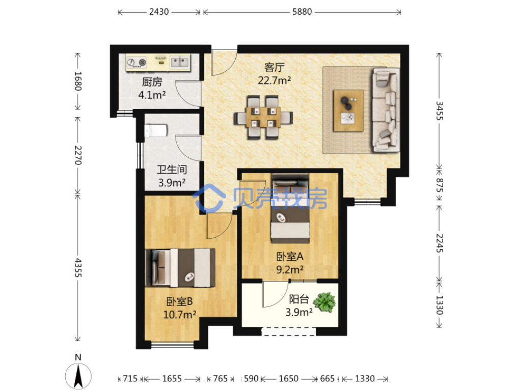 特点:朝南两房,主卧和次卧朝南,阳台面积大。