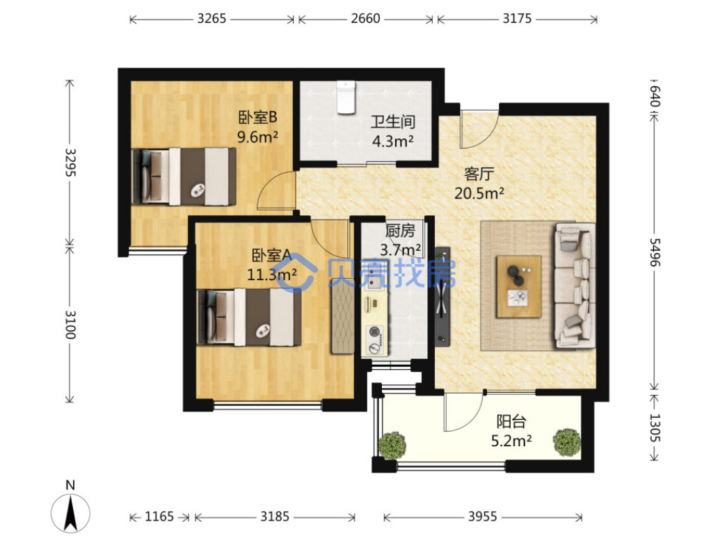热门户型:60平方米两室一厅一卫