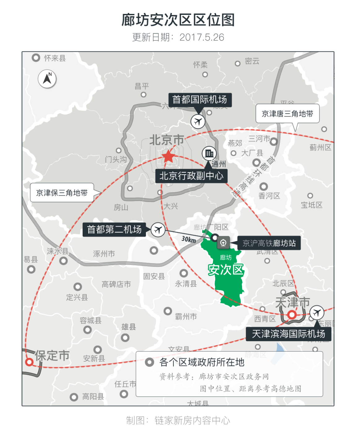 安次区距首都机场约为30公里。新机场周边将形成 “临空经济区”,机场会带动周边形成完整临空产业链,聚集航空产业,高新产品制造业,空港物流业,国际商务及会展,酒店娱乐休闲五大产业形态。