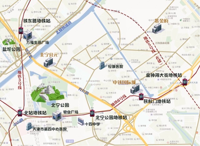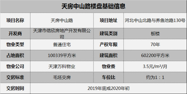 天房中山路位于河北区中山北路与养鱼池路交口,河北区主干道路育红路南侧,与红光中学一路之隔。地铁上盖社区,项目周边公交路网密集,区西侧约500米是著名的北宁公园。 天房中山路由A/B两个独立地块组成,总建面达602200平米,A地块是本案的纯住宅组团,包括10栋高层。地块配备幼儿园,社区养老院的配套资源。B地块属于综合性社区,包括2栋超高层公寓分别为34、40层、一个商业广场、社区型商业、8栋高层住宅;400米高的超高层公寓将成为区域地标性建筑;7万平米大型商业体和商街将成为区域地标级商业中心。