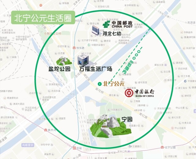 天房北宁公元位于河北区育红路与思源道交口、中环线盐坨桥东侧,北接新开河,南临北宁公园。项目周边道路密集、交通便利,有多条公交线路通行,紧邻地铁3号线及正在施工的地铁5号线。总占地2.5万㎡,总建筑面积约7.24万㎡。天房北宁公元共606户,产品为6栋高层,3栋31层到顶,3栋21层到顶,主推88平米2室,106平米3室。周边教育及医疗资源丰富,生活配套设施齐全。