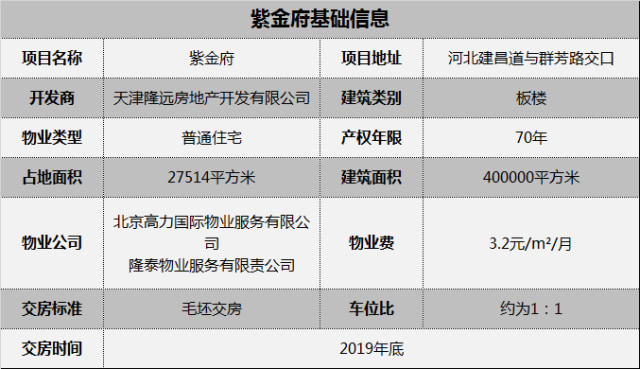 紫金府项目位于河北区建昌道与群芳路交口,是由上市集团隆基泰和倾力打造的绿色建筑。住宅部分规划8栋,4栋高层和4栋洋房。高层2梯4户,2栋31层到顶高层,2栋28层到顶高层。中户是99平米两室户型,边户是125和137平米的2、3室户型。洋房共4栋,洋房1梯2户,3栋11层到顶洋房,1栋6层到顶洋房。10层到顶洋房户型建面均为137平米。6层到顶洋房建面155平米。