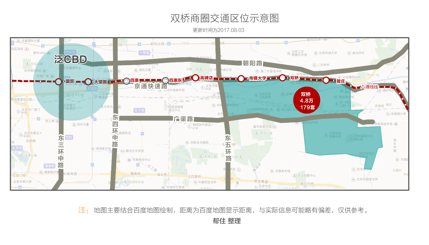 双桥版块处于朝阳路南侧,花园街以东,双桥路以西的大片区域。北京传媒大学和北京第二外国语学院都在这个版块,并且双全商圈商业配套完善,交通便捷,地铁八通线与1号线相连,朝阳路和京通高速横贯东西。