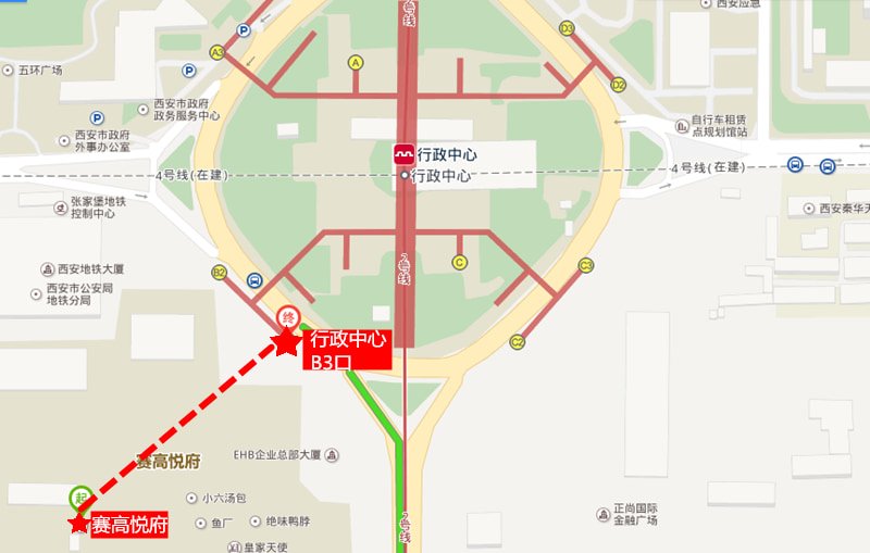 地铁线路:乘坐地铁2号线和地铁4号线(在建中)在行政中心站下车即到(距离项目560米)。