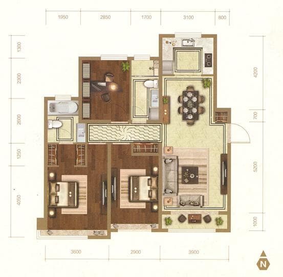客厅:开间3. 9米,客厅出阳台朝南,与餐厅隔开互不干扰