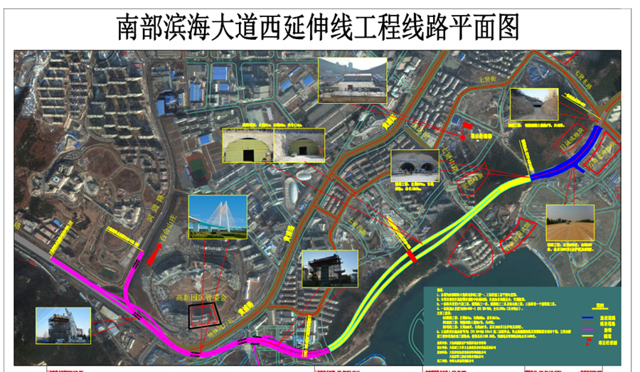 工程包括三部分:凌水湾连接道路-七贤岭隧道-河口湾大桥(建设中)。