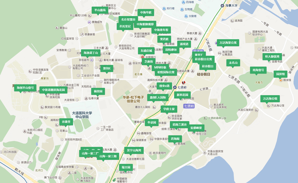 星海湾跨海大桥开通后,高新园区与城市中心区域联系更为紧密,经年车流不息,但在早晚高峰时段,星海湾跨海大桥西端却形成了新的交通堵点。七贤岭隧道所属的西延伸线工程就是为了缓解黄浦路及凌水湾周边道路交通压力建设的,2017年10月,七贤岭隧道竣工。