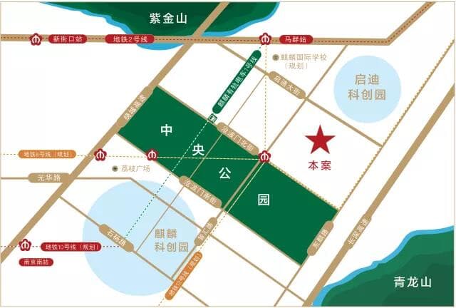 项目距有轨电车一号线麒麟生态公园站约800米,周边314、180、312、743等多条公交路线。自驾可通过绕越、绕城、宁杭、沪宁四条高速公路。