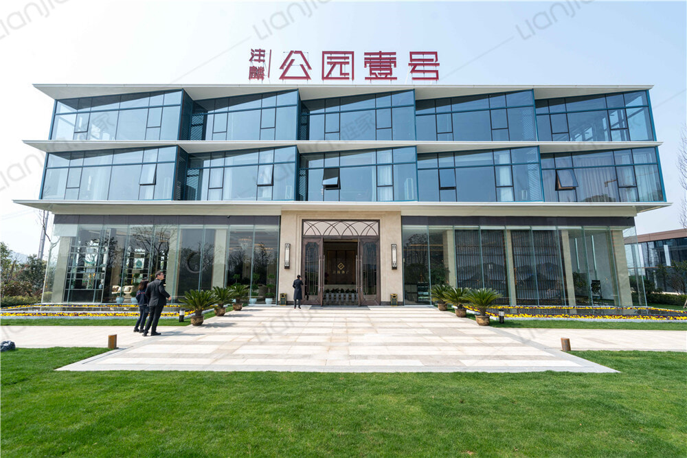 全屋采用大面积落地玻璃幕墙,观景采光视野较佳。玻璃幕墙采用南玻原厂原配双钢化的10超白LOW-E+12A+10白玻。夏季能让光线尽可能多的透过,同时阻挡过多热量进入室内;在冬季满足采光要求的同时,能尽可能的保留室内热量,防止散发出去。