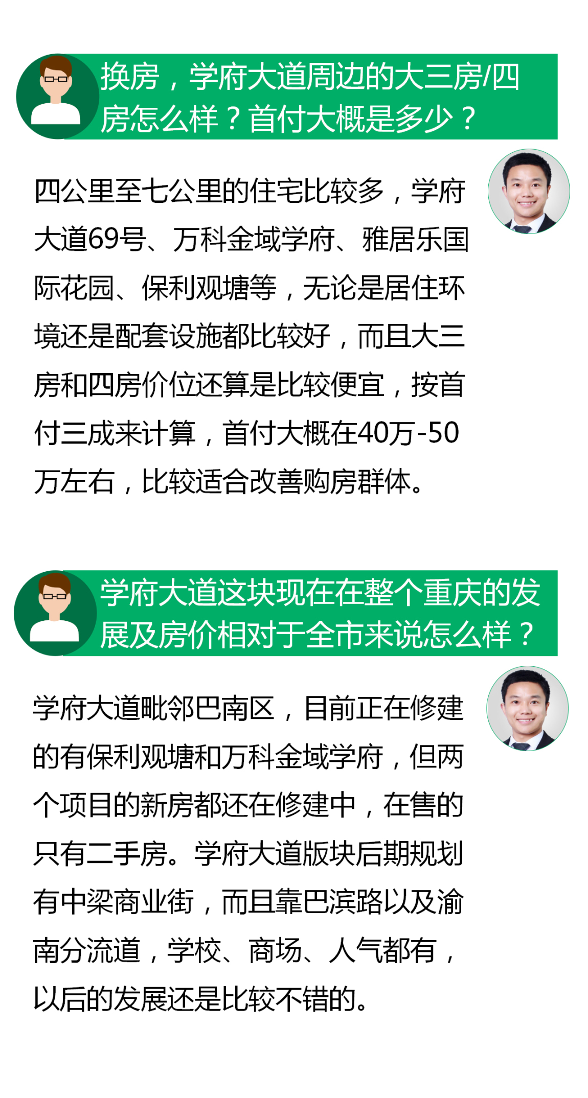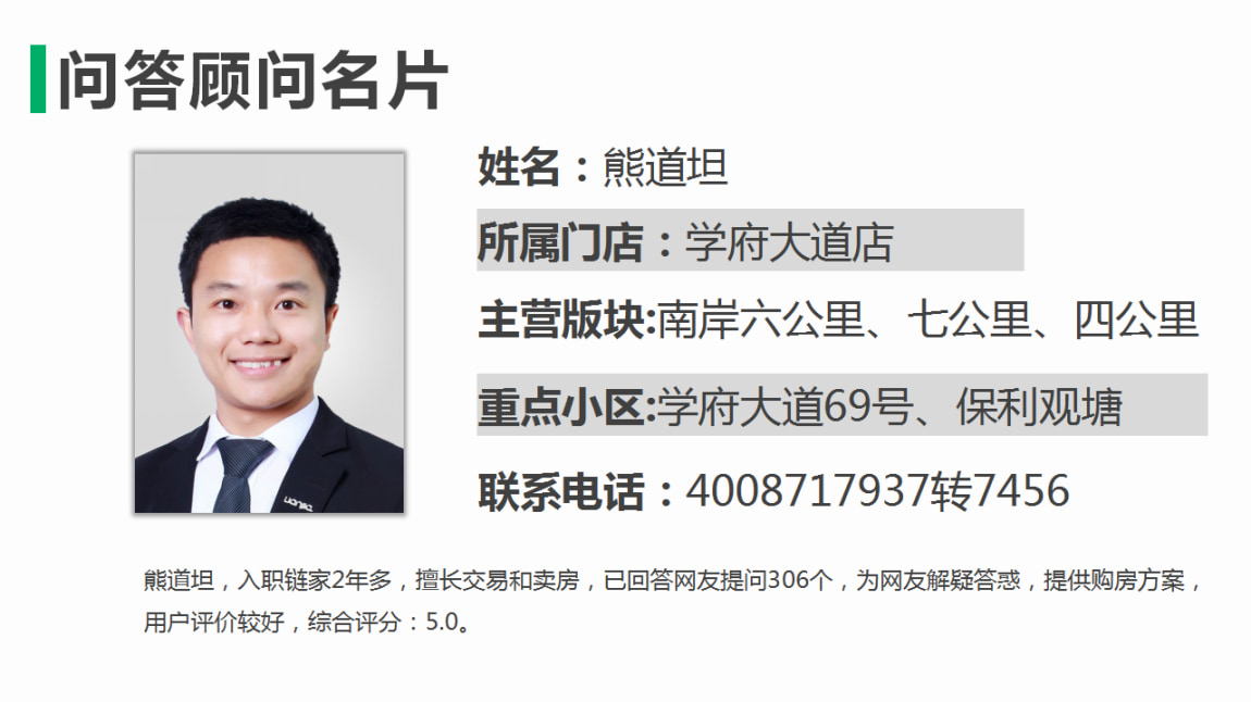 本期问答精选邀请到南岸学府大道店店经理熊道坦,为大家解读学府大道二手房情况,并解答二手房交易的相关问题。