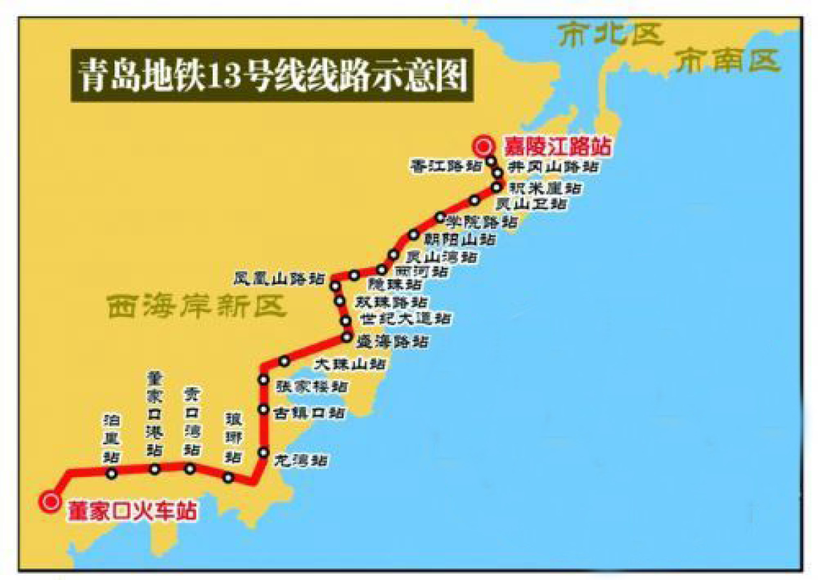 据青岛地铁消息,西海岸新区首条地铁——地铁13号线将于年内开通。这也标志着西海岸新区即将迈入地铁时代。地铁13号线起于西海岸嘉陵江路站,终于董家口火车站,整体呈东北—西南走向,是一条贯穿西海岸新区的交通大动脉。