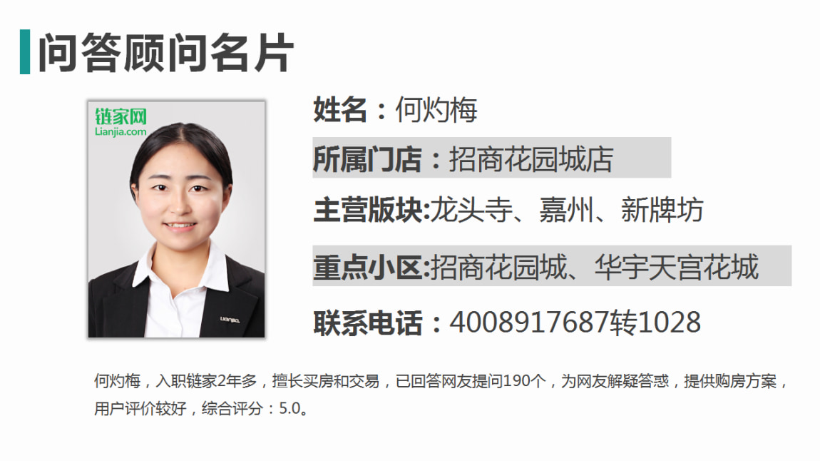 本期问答精选邀请到招商花园城店的何灼梅,为大家解读龙头寺北广场版块的二手房情况。