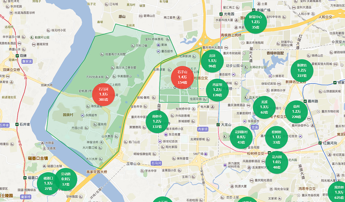 由于近年来,区域内交通、商业等配套的不断发展,石马河和石子山区域的住房也越来越受关注。由于区域内没有新房,因此二手房关注度比较高,而且,区域内大社区汇集,像龙湖源著、金科十年城、凤凰湾、诚投天邻风景等,都是品牌开发商修建的小区,户型产品多样,购房者的选择空间比较大。