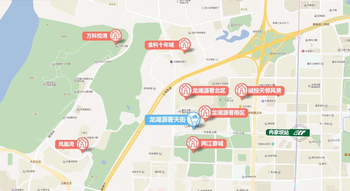 结合实际的二手房买卖业务来说,区域内适合刚需家庭的房源较多,两房首付40-50万多万,三房首付60-70万。区域内的小区关注度比较高的是龙湖源著、诚投天邻风景和金科十年城,接下来,我们就来了解一下区域内的几个大社区。