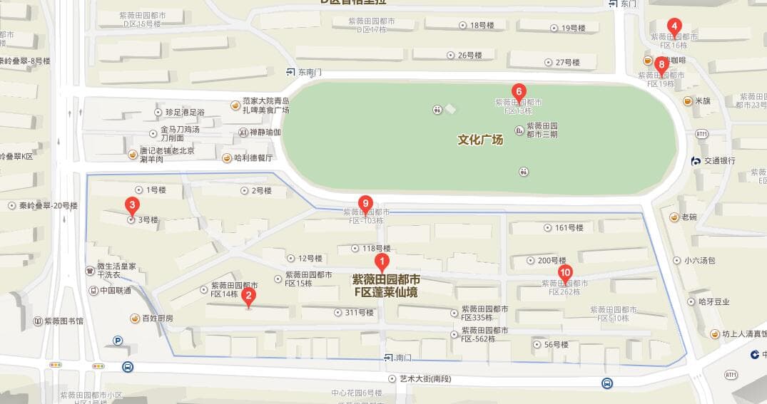 紫薇田园都市F区位于博士路东侧,高新六小南面,阳光天地北面;由紫薇地产开发有限公司开发,建成于2005年,小区多为联排别墅和独栋,是整个紫薇田园都市十个区里面位置较好的区域。小区总建筑面积1800000平方米,共62栋楼,户数约198户。(备注:图片截自百度地图)