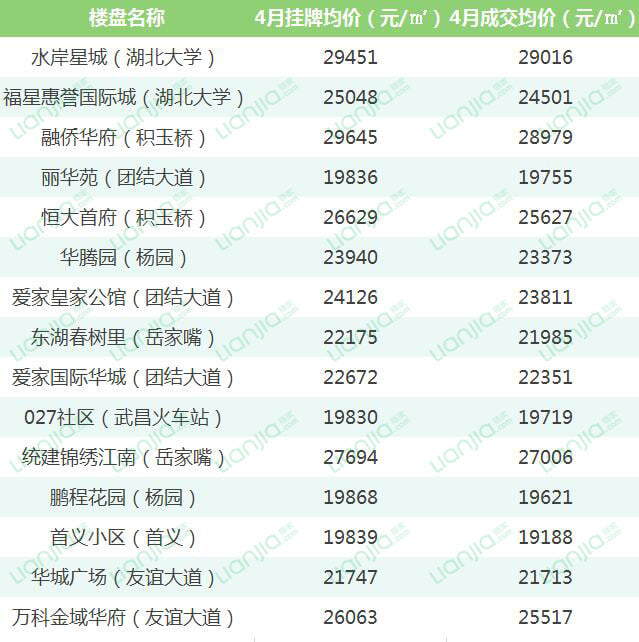 链家网内容中心为你整理4月武汉各片区热门小区的挂牌均价和成交均价,快来看看你家房子能值多少钱?(热门程度依据链家网2018年4月小区页面点击量排名决定)。