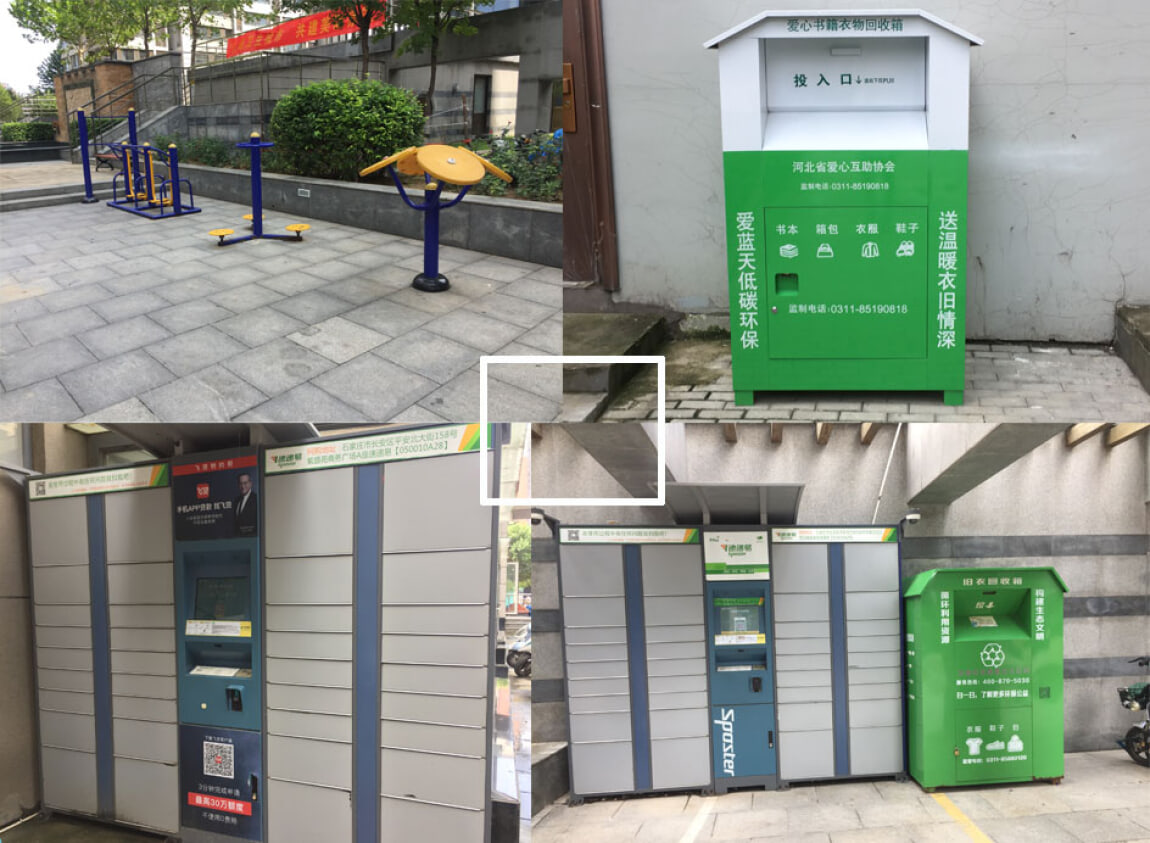 小区内部除了这些商业与教育配套外,健身设施肯定是不能少的,坚持每天锻炼,强壮中国人,这里平时也是老人带小孩玩耍的必备场所,在这里随处可见的还有快递柜跟爱心衣物、书籍回收箱,这里不仅环境好,人心更美,在小区里你向居民咨询问题他们都非常热情的回答你的问题。