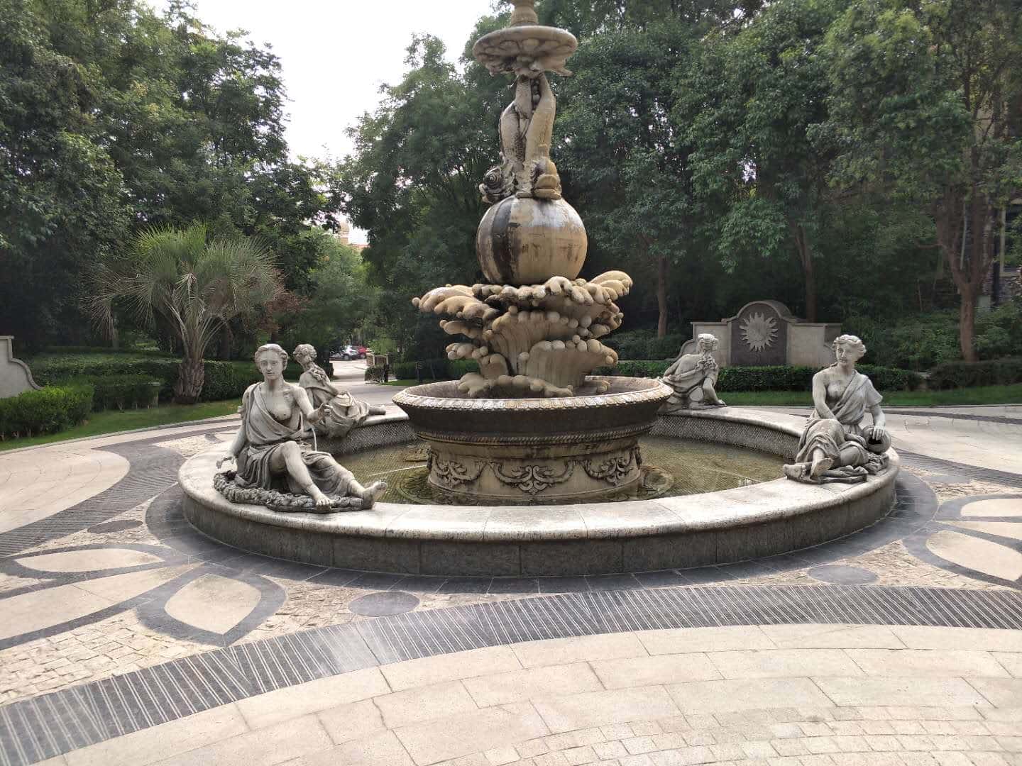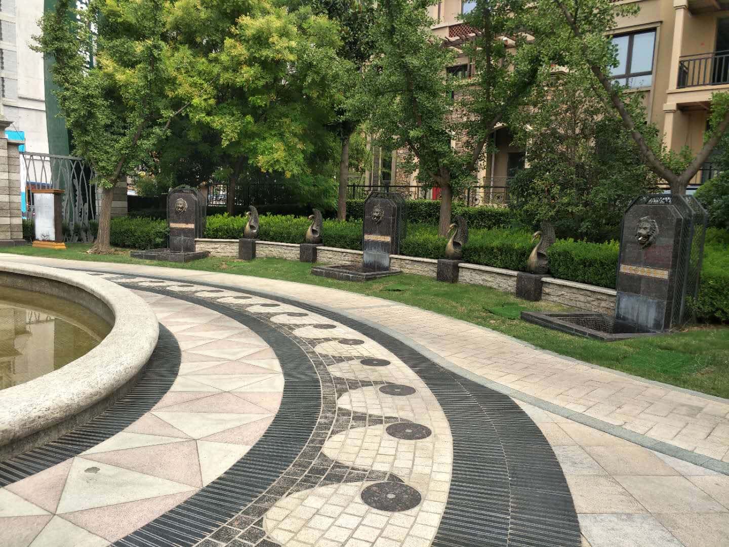 有雕塑、喷泉,雕塑有着非常强悍的视野冲击力,与喷泉的壮观景色相得益彰,喷泉可以湿润周围空气,减少尘埃,降低气温,即使炎炎夏日,小区内也是很凉快的。