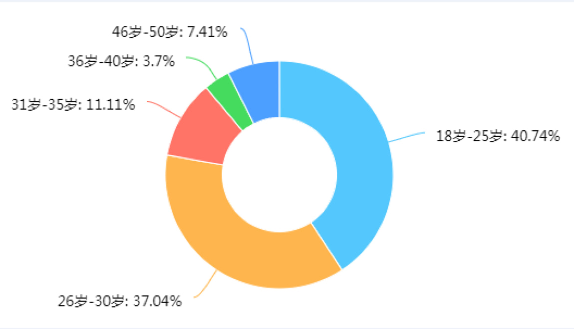 年龄方面,18岁-25岁之间的年轻人成为此次问卷调查的主体,占40.74%,26岁-30岁次之,占37.04%,紧跟其后的分别是年龄在31岁-35岁的,占11.11%;在46岁-50岁的,占7.41%;在36岁-40岁的,占3.7%。