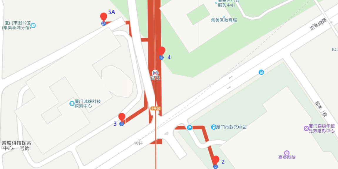 5A出口通往市图书馆集美分馆、中航城国际社区