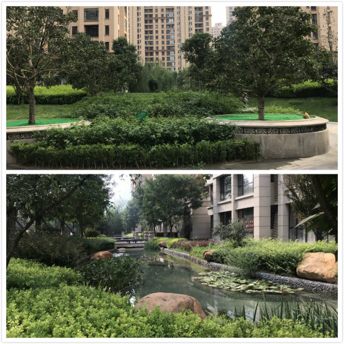 进入小区后,映入眼帘的是经过精心修剪过的绿树草坪,还有人造小桥池塘等。在偌大的城市中,能在保持着现代精致生活的前提下,对住宅赋予一番小桥流水人家的诗意,也只有精修的园林设计能做到如此了吧。个人对星河盛世的园林设计表示很喜欢,在片区算是很好的园林设计了。