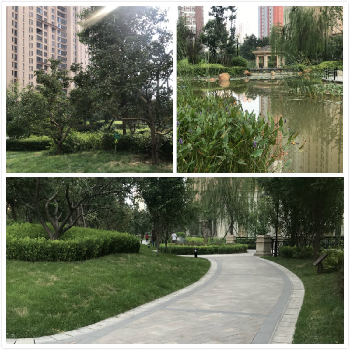 小区内有专门的保洁人员定时定点清扫,我去时有很多工作人员在为绿植浇水。走在美丽静谧的小路上,如同进入公园一般,我只想走的慢一点,更慢一点,好好欣赏这一切。