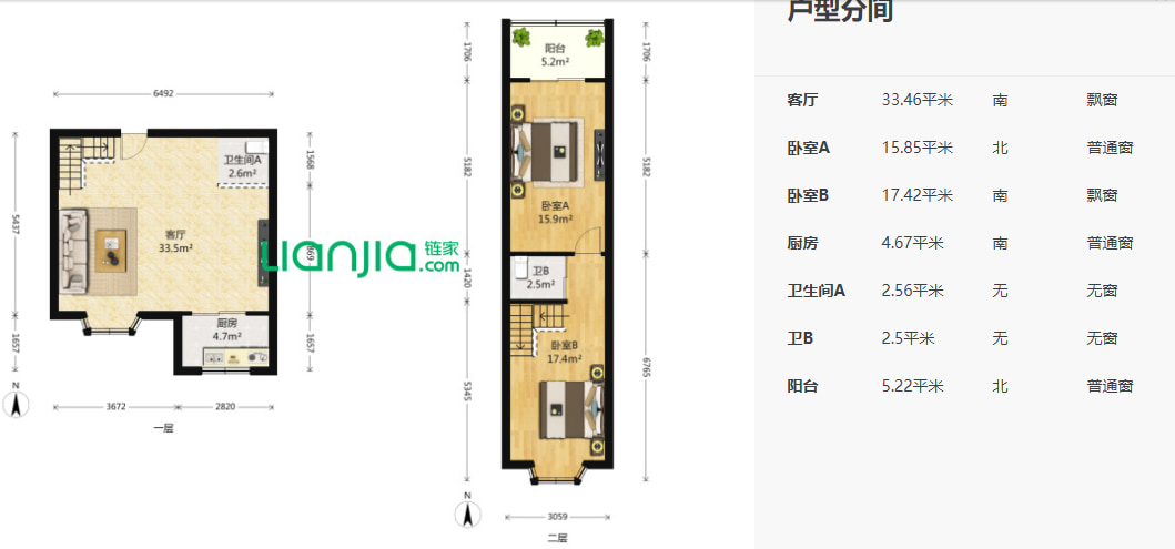 推荐理由:跃层两室两厅,南北通透,动静分离,适宜居住