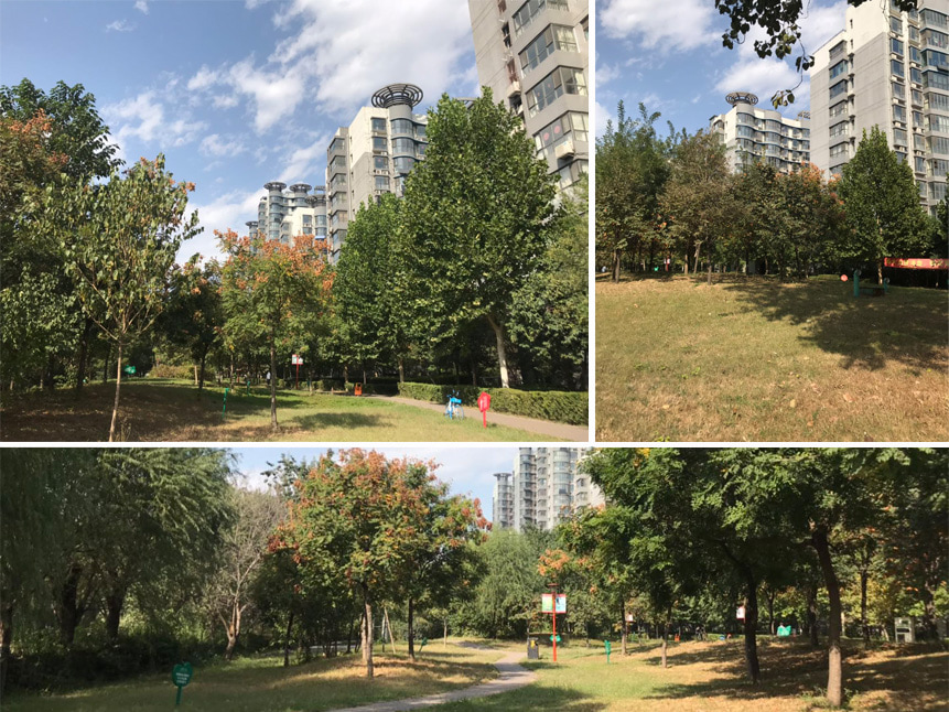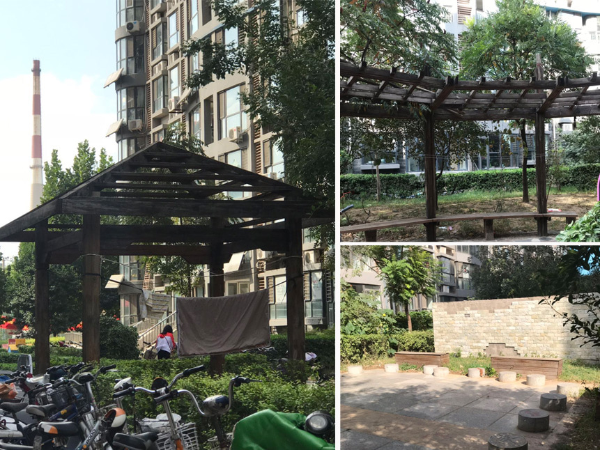 每栋楼下的公共空间打造的简约雅致,富人情味的凉亭、休息区,相得益彰。可能工作与生活的繁忙,使人们忘了停下脚步看看自然的美好,公共区域的自行车摆放的也多一些。