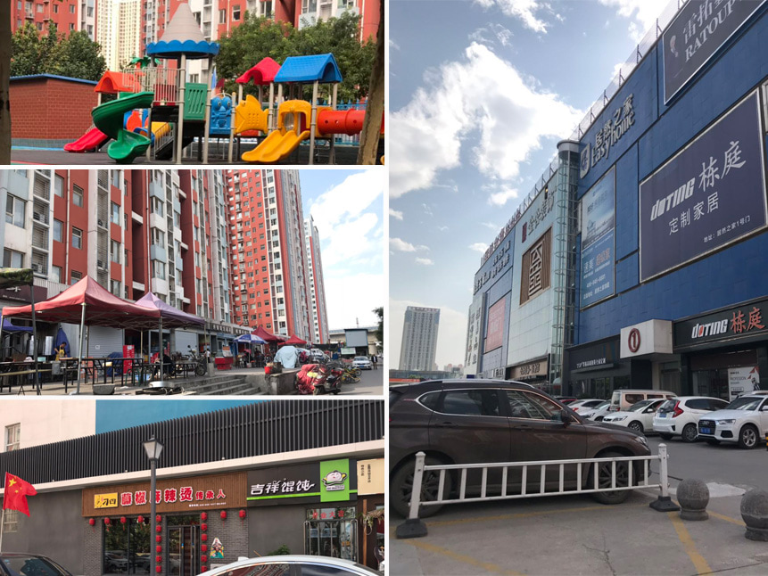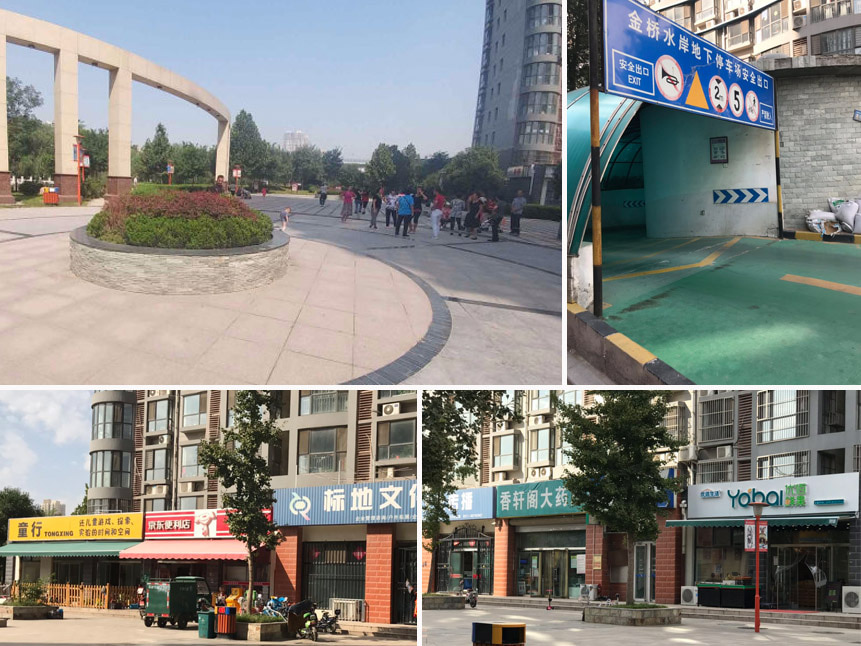 每栋楼的东侧都有非机动车棚以及地下停车场的出口,小区广场上有小区自建的底商,其中包括鲜果店、便利店、盲人按摩、棋牌室、教育培训机构等。小区广场时常会有居民自发的娱乐活动,或者父母、老人闲暇时,会带小孩子来这里玩耍,这里算是小区里一个比较热闹的存在。小区内还有一个篮球场可以供业主锻炼身体使用。