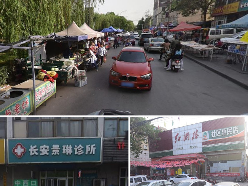 小区西门外有综合社区惠民店、诊所、便民市场等,满足居民日常生活购物,也还算方便。