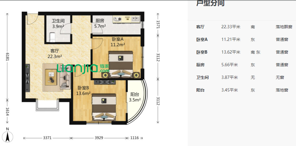 推荐户型一:客厅主卧朝南,次卧朝东,采光充足,适合刚需人群