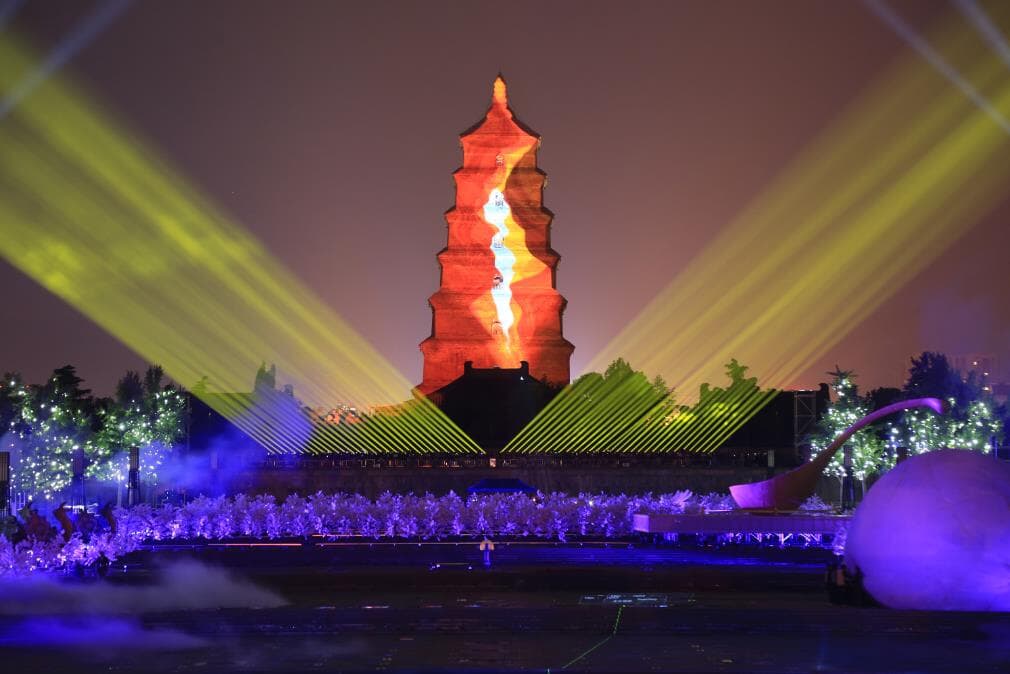 大唐芙蓉园里全球幅宽最大的水幕电影、大雁塔的灯光秀等,元宵节夜晚,500架无人机在高新区上演“西安之夜”!科技感十足,红遍网络,惊艳世界。