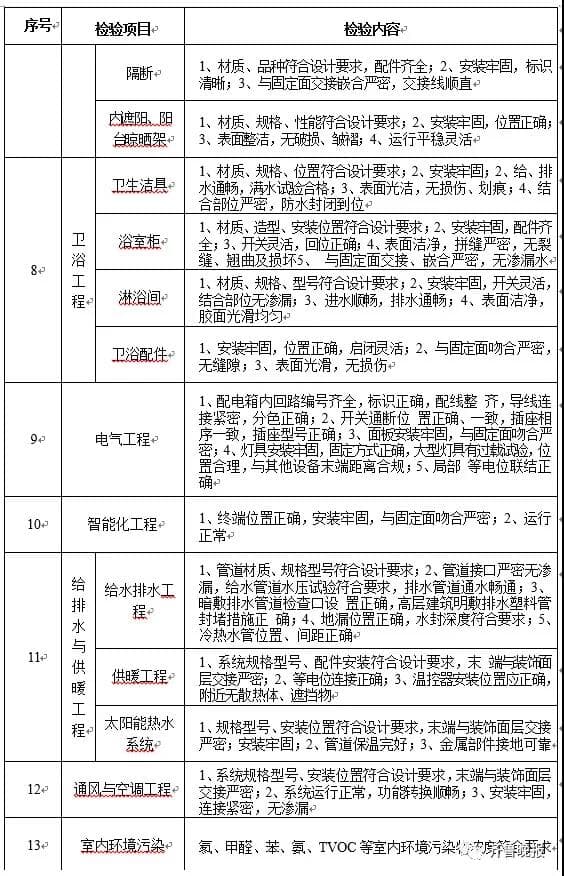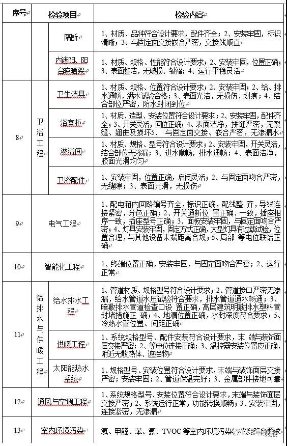 同时,《住宅项目规范》对房屋验收交付给出了详细的标准。如对放水工程要求,防水墙、地面无渗漏、无积水;抹灰顶面的要求则是,粘结牢固,无空鼓,表面平整、洁净,无裂缝,无爆灰等等。