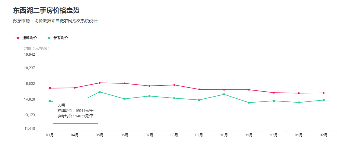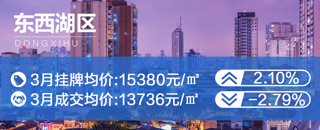 (2019年3月东西湖区成交均价为13736元/㎡,与2018年3月相差较大,均价同比下跌895元/㎡)