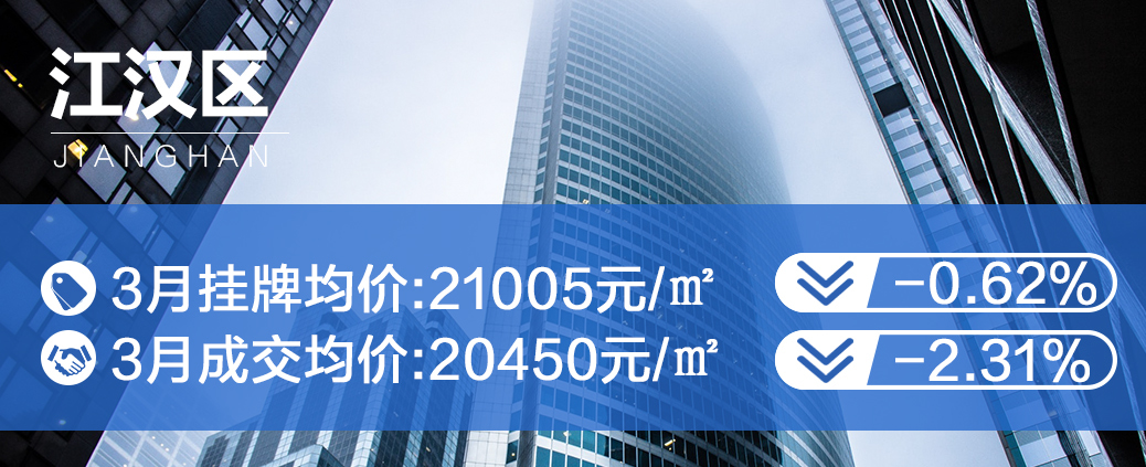 (2019年3月江汉区成交均价为20450元/㎡,与2018年3月相差不大,均价同比上涨82元/㎡)