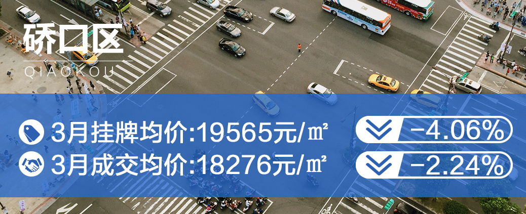 (2019年3月硚口区成交均价为18276元/㎡,与2018年3月相差不大,均价同比下跌191元/㎡)区域点评: