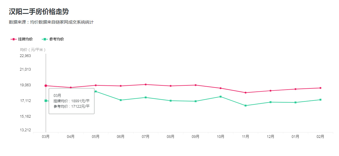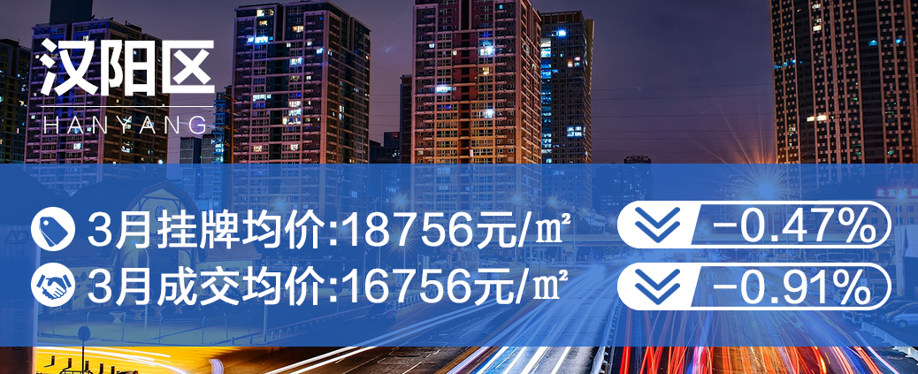 (2019年3月汉阳区成交均价为16756元/㎡,与2018年3月相差不大,均价同比下跌366元/㎡)
