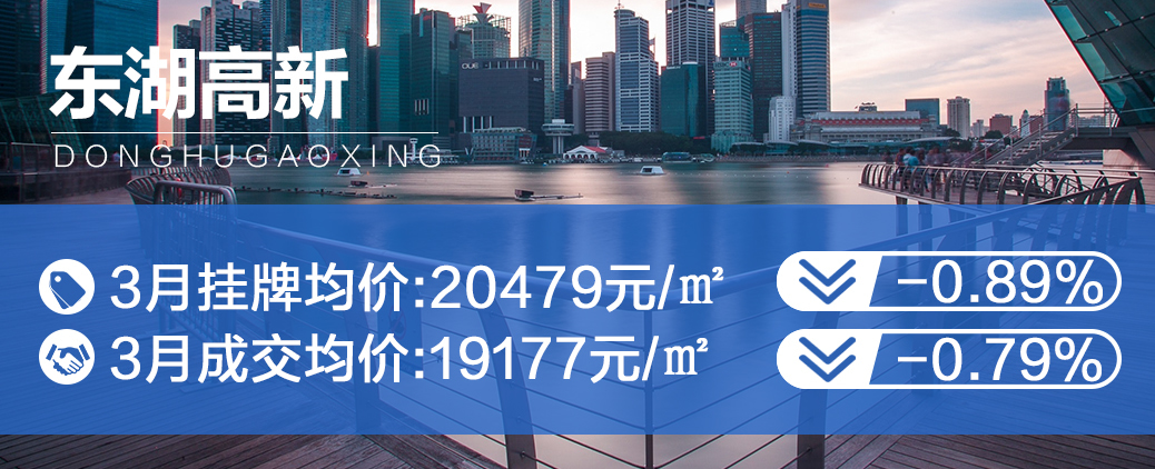 (2019年3月东湖高新区成交均价为19177元/㎡,与2018年3月相差不大,均价同比上涨484元/㎡)