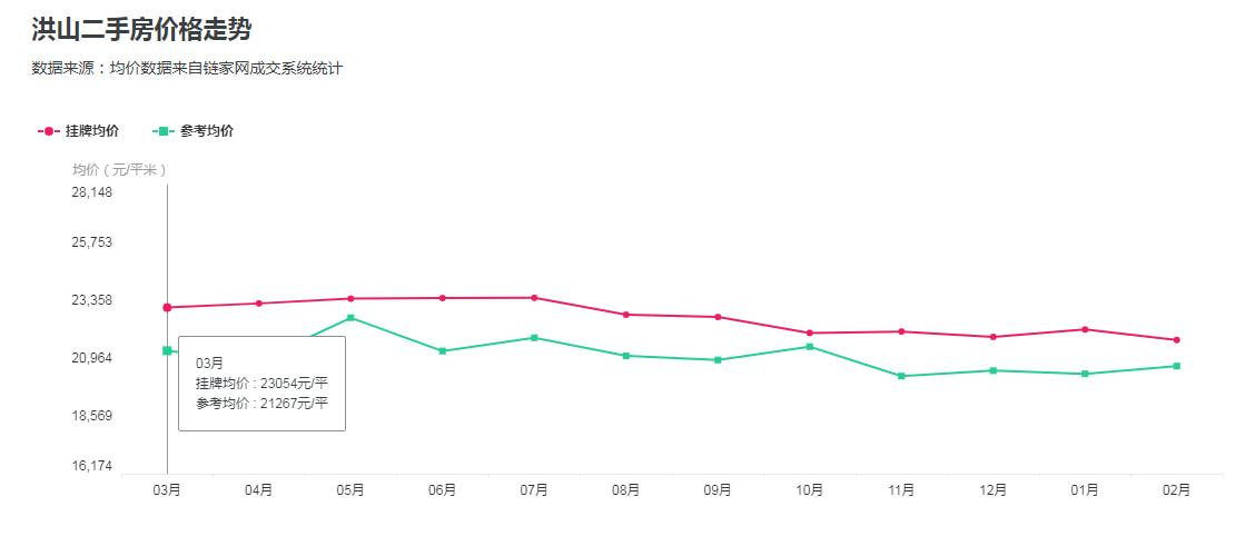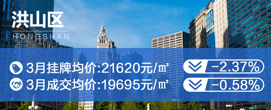 (2019年3月洪山区成交均价为19695元/㎡,与2018年3月相差很大,均价同比下跌1572元/㎡)