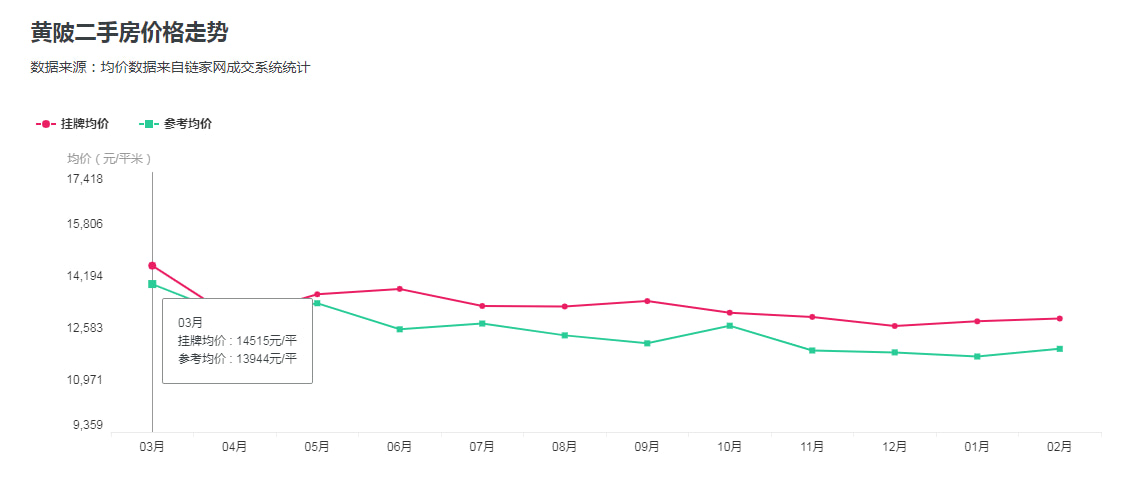 (2019年3月黄陂区成交均价为11631元/㎡,与2018年3月相差较大,均价同比下跌2313元/㎡)