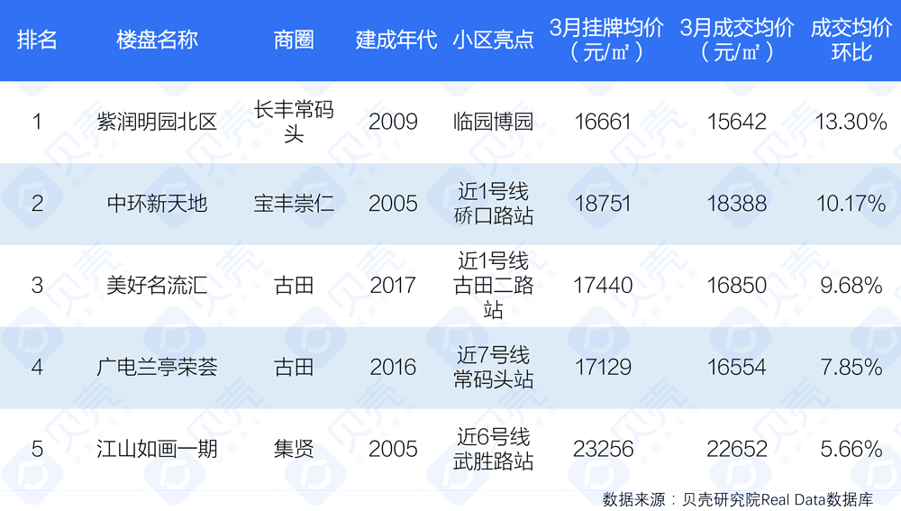 3月热门商圈TOP3分别是宝丰崇仁、古田、长丰常码头。3月商圈成交均价分别为21614元/㎡、16619元/㎡、15072元/㎡。宝丰崇仁商圈作为硚口中心商圈,周边商业集中,有多个重点小学、中学。