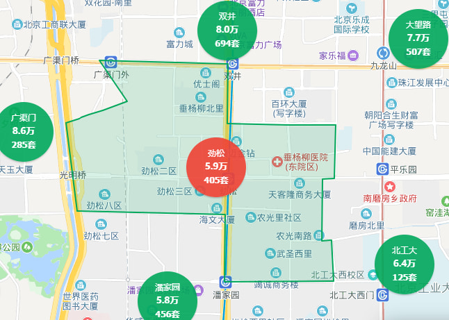 如果只是地理位置佳、交通便利,那劲松也不至于那么凸显。劲松吸引人之处更多在于较低的房价。