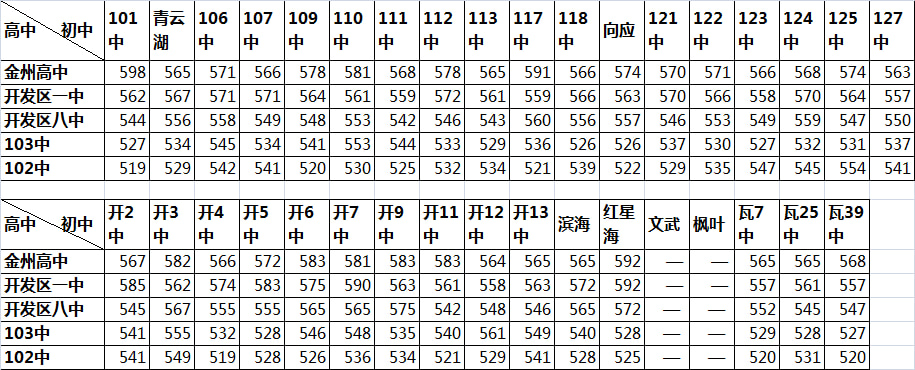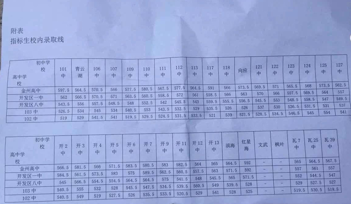 金普新区2016年中考普通高中录取分数线公告: